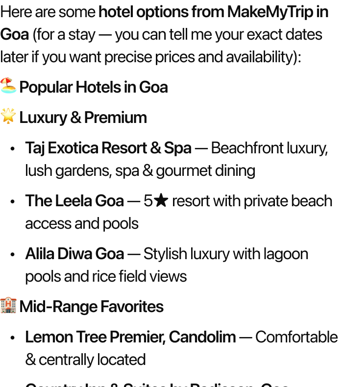 Show me Hotels for Goa.