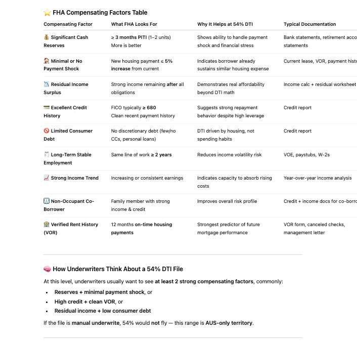 FHA loan with 54% DTI: which compensating factors qualify?